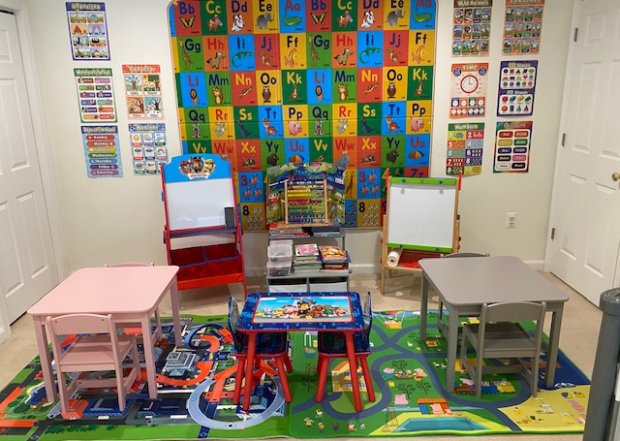 The curriculum is play-based and children engage in arts and crafts, gardening, and other hands-on activities. The daycare includes separate areas for learning, play, and rest, with age-appropriate materials throughout. English is the primary language used, with optional exposure to Urdu, Farsi, and Hindi for families interested in introducing additional languages.